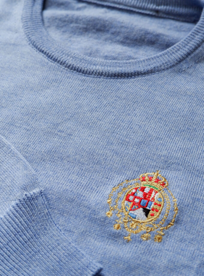 • Pullover girocollo lana merinos stemma Regno di Napoli celeste