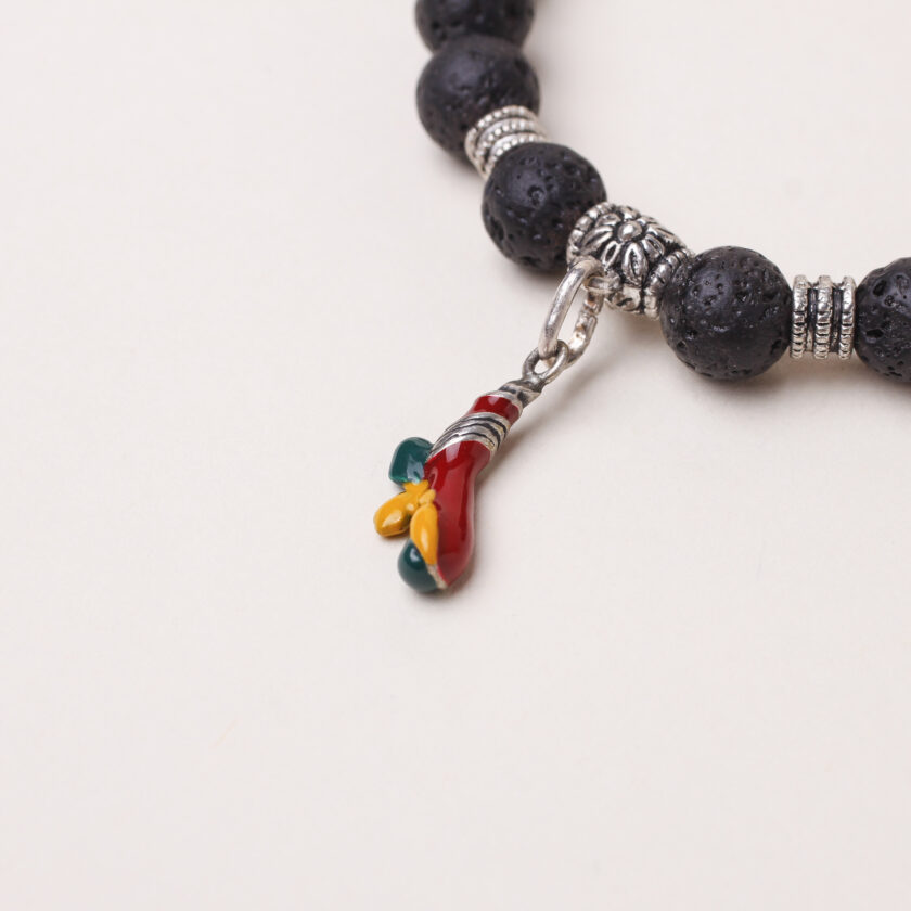 Bracciale pietra lavica del Vesuvio ciondolo asso di bastone carte Napoletane in argento 925 e smalto