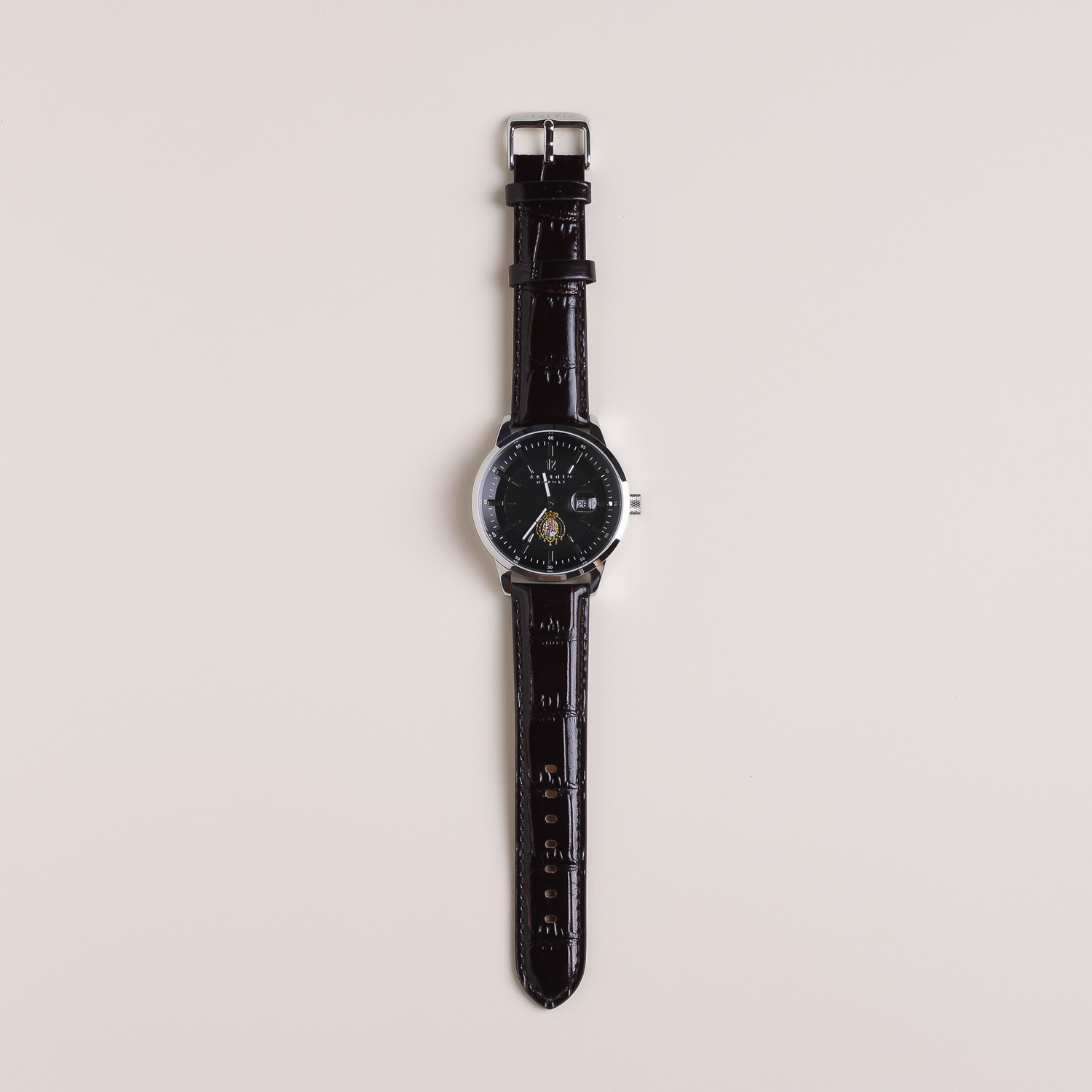 Orologio Argenio Napoli nero stemma Borbone cinturino in pelle